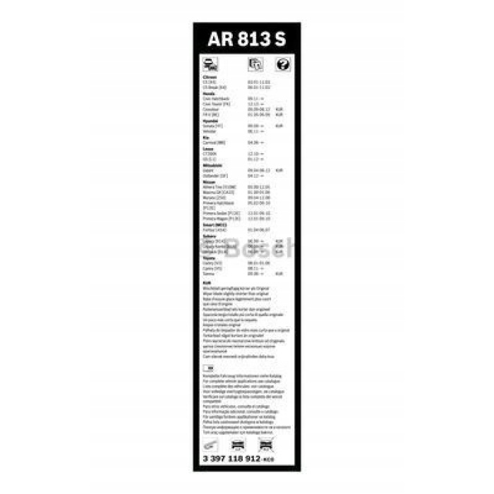 - Rodzaj wycieraczki : Bezprzegubowe